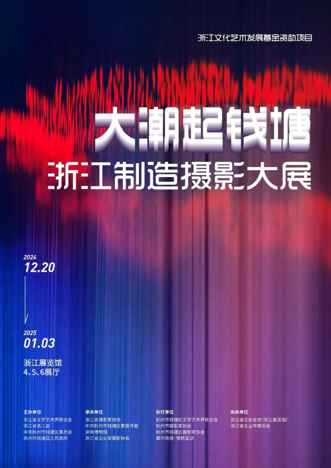 浙江文化艺术发展基金资助项目浙江制造摄影大展,自2024年12月20日在浙江展览馆闪亮登场后,看展观众络绎不绝,社会反响强烈,各类媒体竞相报道。为回应广大观众和摄影爱好者需求,经举办单位协商,决定将闭展时间从2025年1月3日延至1月5日,还没来得及看展的观众,赶紧安排起来哦~