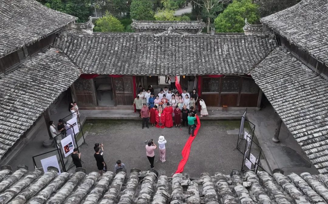 高迁村折桂堂内举行中式婚礼。王均海 摄