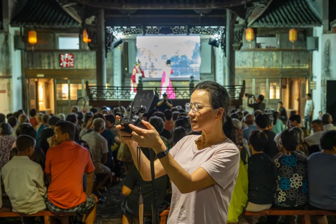 2024年8月,鲍小红在高迁村用无人机航拍乡村大戏。张志 摄
